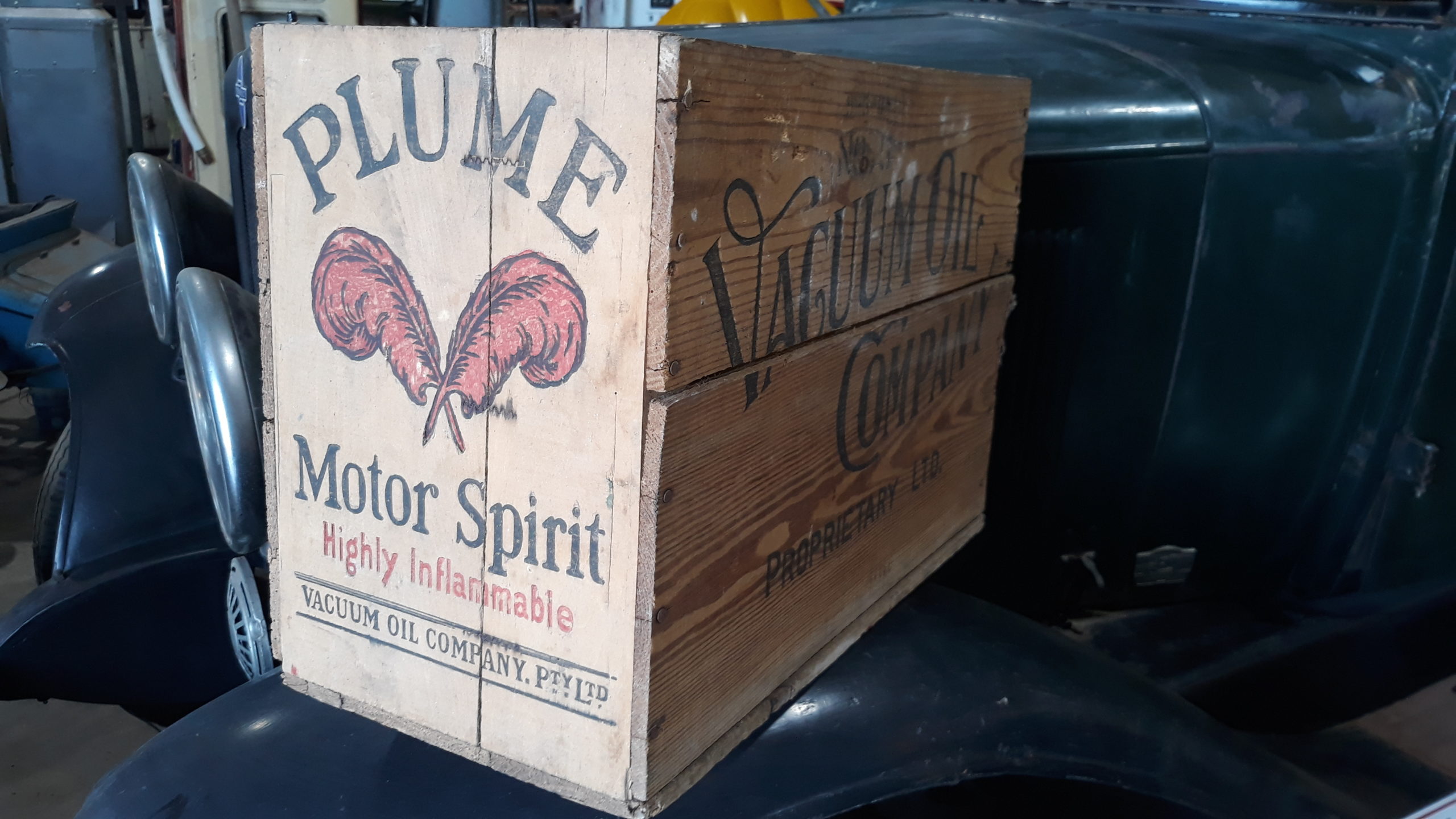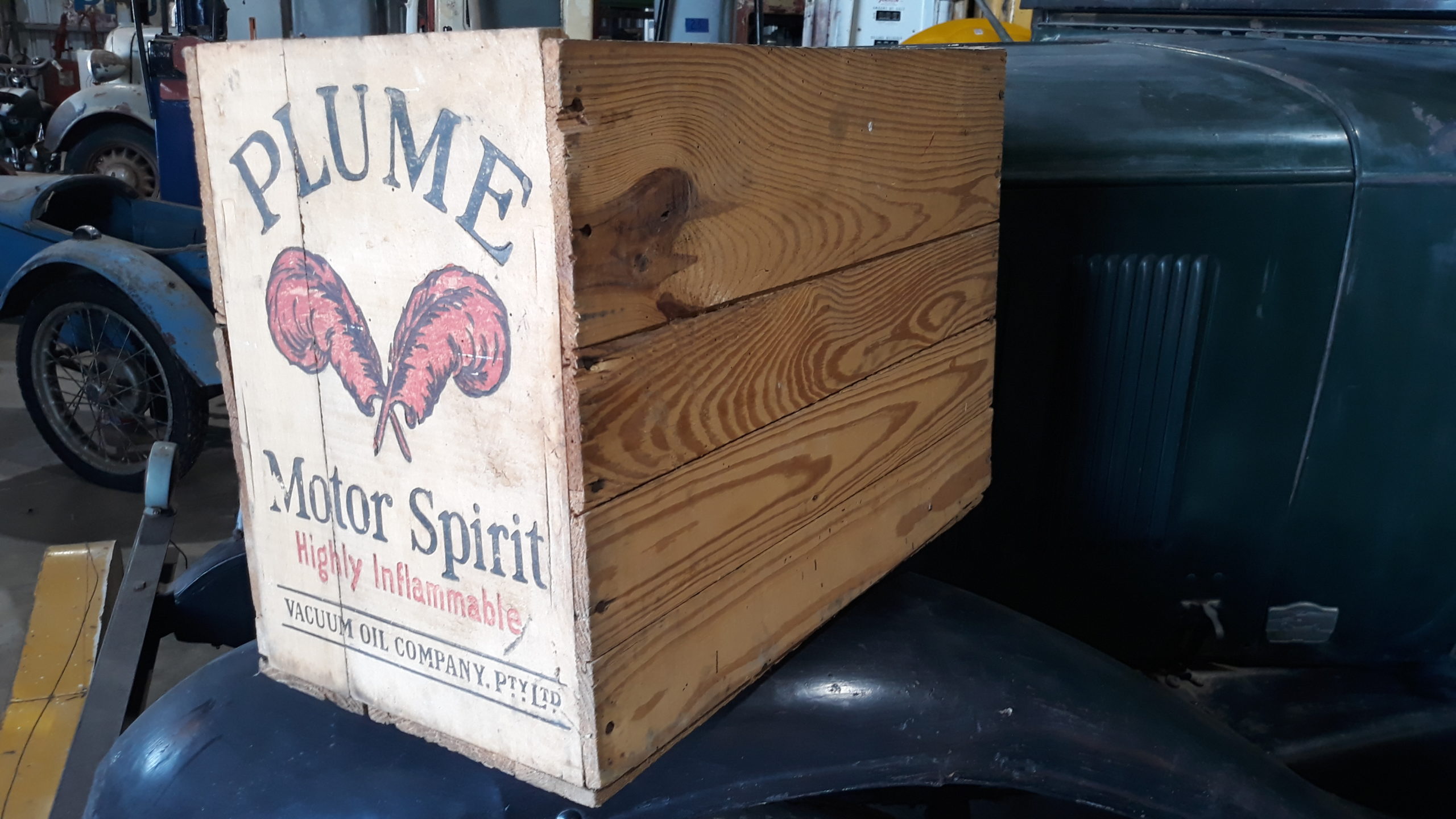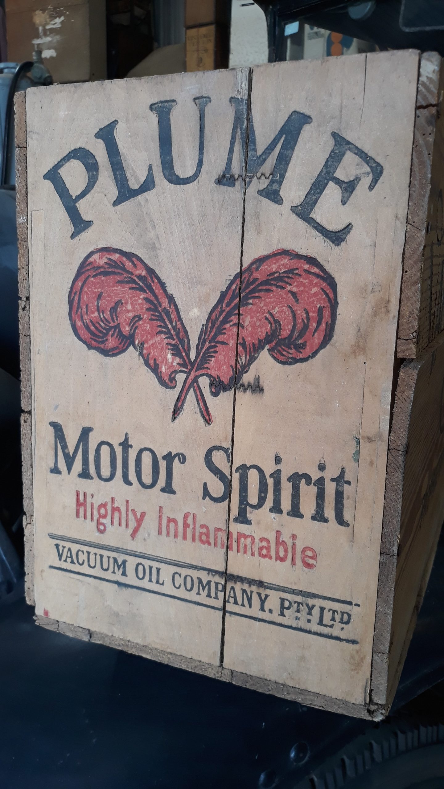 Original Plume motor spirit wooden box.
